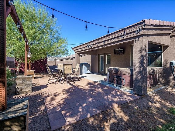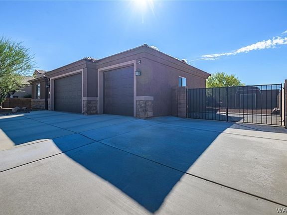 Beautiful 4 bedroom home in Hualapai Shadows with 3 car garage and RV parking! This home offers 1,712 sq ft of living space, a bright open floor plan and NO CARPET! Other important features and upgrades include: *Fully landscaped with rock, matures shrubs and grass on watering system *Exterior stone accents *Tile roof *Upgraded 50 gallon water heater *Water saver toilets *Soft water system *Ceiling fans *Custom faux wood blinds *LED lighting *Casual dining *Kitchen island/ breakfast bar *Granite counter tops *Subway tile back splash *Double oven *Kitchen pantry *Split bedrooms *Upgraded Luxury vinyl in bedrooms *Master suite with walk-in closet, upgraded barn door, dual sinks and walk-in tile shower *Three guest bedrooms with full bath *Indoor laundry room *10x20 back patio extension *Hot tub *Block wall fencing *12x12 utility shed. This property is located in a highly desired subdivision and features views of surrounding mountains and sunsets!