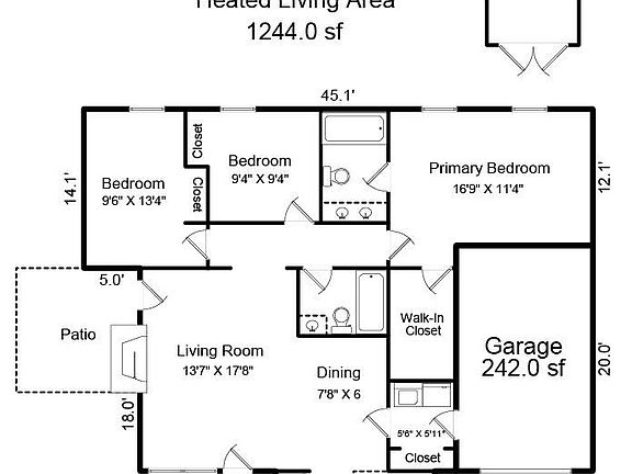- Total interior livable area: 1,244 sqft