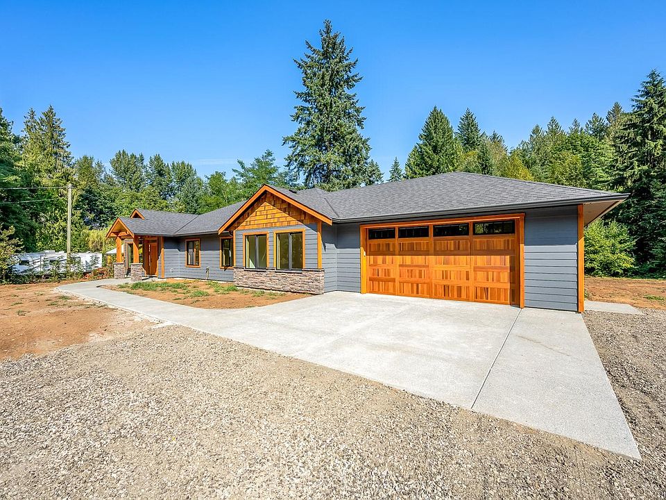 ~Open House Saturday September 13th 11-1230pm~3 bedroom, 2 bath, 2310 sq ft executive rancher by Dragonfly Homes, ready for occupancy. Set on a level 2 +/- acre, private treed lot with a 1000 sq ft detached shop with over height garage doors. This high end rancher has all the west coast finishing Dragonfly homes is known for with a modern twist. Hardwood and tile floors, fir trim, hemlock doors and a huge great room with vaulted ceilings that extend through to the huge partially covered patio. Living room boasts floor to ceiling windows and a cozy fireplace. Gourmet kitchen with modern finishing, lots of cabinetry and quartz counters. Luxurious master suite has a walk in closet and ensuite with free standing soaker tub, jack and jill sinks and walk in tiled shower. Electric forced air furnace with a heat pump keeps you cool in the summer. This one level home has a covered entry way with fir timber details, hardi plank siding a garage attached to the house as well as the detached shop.