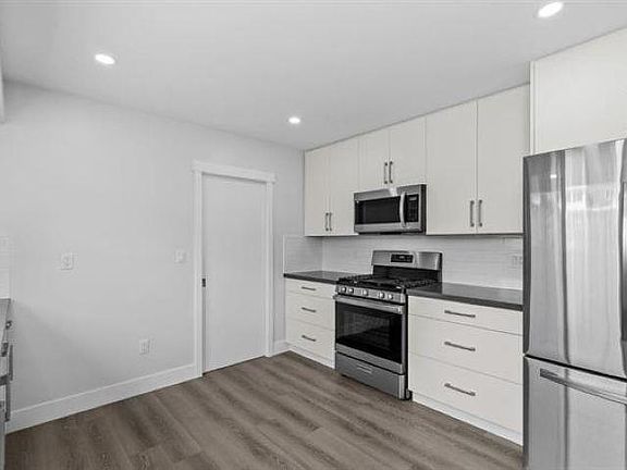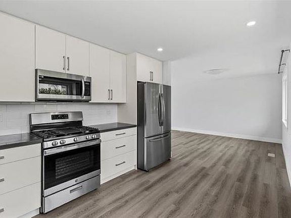 Quartz countertopsStainless steel appliancesUndercabinet lightingTiled backsplashPot lightsDurable vinyl plank flooringNew baseboards