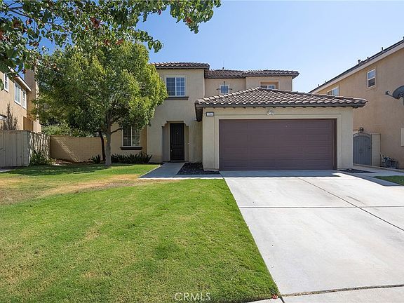 Spacious Alberhill on the end of a cul-de-sac. Beautiful upgraded home sits on a HUGE usable lot ready for your pool/spa or other outdoor inspirations. Lots of concrete work already done in the back and side yards. Home boasts a large kitchen with stainless steel appliances, huge island, granite counter tops, upgraded cabinets, and walk-in pantry. Breakfast eating area will accommodate a 48" table. Adjoining family room has a cozy gas fireplace. Formal dining room. Living room with vaulted ceiling. Many ceiling fans, vertical blinds, laminate and newly carpeted flooring. Freshly painted. Upstairs features two large guest bedrooms and a bonus room/office. Upstairs master bedroom has a spacious bathroom with two walk-in closets, deep soaking tub, and tiled shower. Upstairs laundry room with gas hook-ups. Whole house fan and wi-fi thermostat help keep energy costs low. 3-car tandem garage features epoxy flooring and a nice built-in workbench. Great location near schools, shops, and the freeway. HOA includes a community pool, kid's spray park, and nice clubhouse. Approximate room sizes are as follows: living - 10.5'x12', family - 13'x16', dining - 10.5'x14', master bedroom - 13'x15.5', front guest bedroom - 10.5'x13', rear guest bedroom - 10'x13', bonus room - 10'x13.5'.