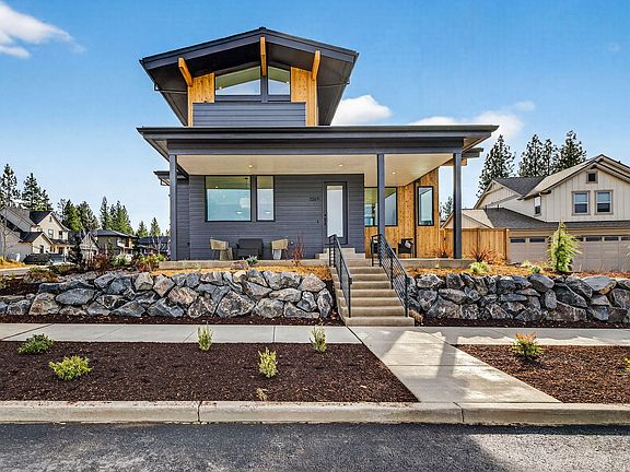 Experience luxury living at its finest in this contemporary prairie-style masterpiece by Bruce Wiechert Custom Homes, Inc., ideally located in the highly desirable Shevlin West community. Designed with a blend of modern elegance and timeless craftsmanship, it showcases rift oak cabinetry, custom lighting, hardwood floors, and premium Thermador appliances. Perched on a corner lot, the home enhances the amazing Cascade Mountain views and offers added privacy. A spacious three-car garage includes an RV bay, providing both style and functionality. The main level features a primary suite, guest bedroom, office, and open-concept living area that flows seamlessly to a flat, fenced backyard - perfect for entertaining or quiet relaxation. Upstairs includes two bedrooms, a Jack and Jill bathroom, a loft, and a bonus room with a walk-out deck - ideal for taking in the spectacular views.