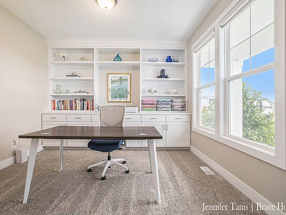 Showings begin Tues, 9/2. Discover this like new Interra-built home in Hudsonville's High Point View neighborhood! The main level offers open-concept living with a bright kitchen featuring solid surface counters, large island, walk-in pantry plus spacious dining and living areas. Work from home in the main level office that offers a full wall of custom built-in cabinetry. Upstairs, a versatile loft separates the private primary suite from the guest bedrooms. The current owners have finished the daylight basement, adding a large rec room, full bath, and an additional bedroom. A 3-stall garage and move-in ready condition make this home a standout in a sought-after neighborhood!