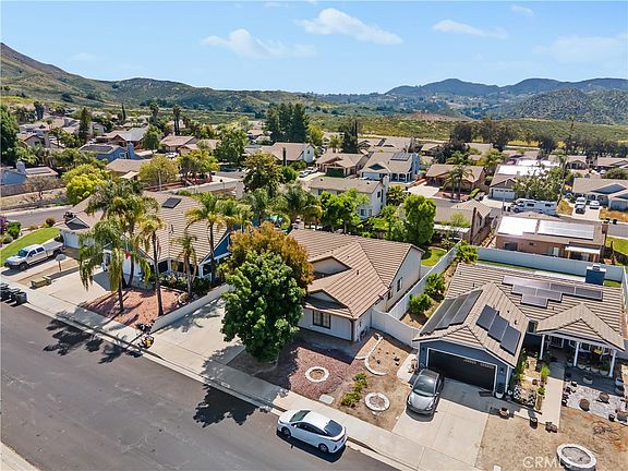 Tucked away on the peaceful east side of Wildomar this single offers a 1.1% tax base, no HOA, RV/boat parking, recently updated HVAC system and is located just minutes from the 15 freeway making it that much easier for commutes north or south! Imagine watching sunsets on the front patio or entertaining friends and family in the backyard. Either way outdoor space is more than ample! This three bed two bath layout offers vaulted ceilings throughout, a formal living room with stone veneer fireplace, separate formal dining room with plenty of windows allowing for natural light to pour in, kitchen with well-maintained hardwood cabinets along with a breakfast nook, two spare bedrooms with ample size, indoor laundry room with storage cabinets and counter space And to top it off your master with a large slider that leads right out to your backyard space. This property is eligible for all financing options and is ready for a new owner to call it home!