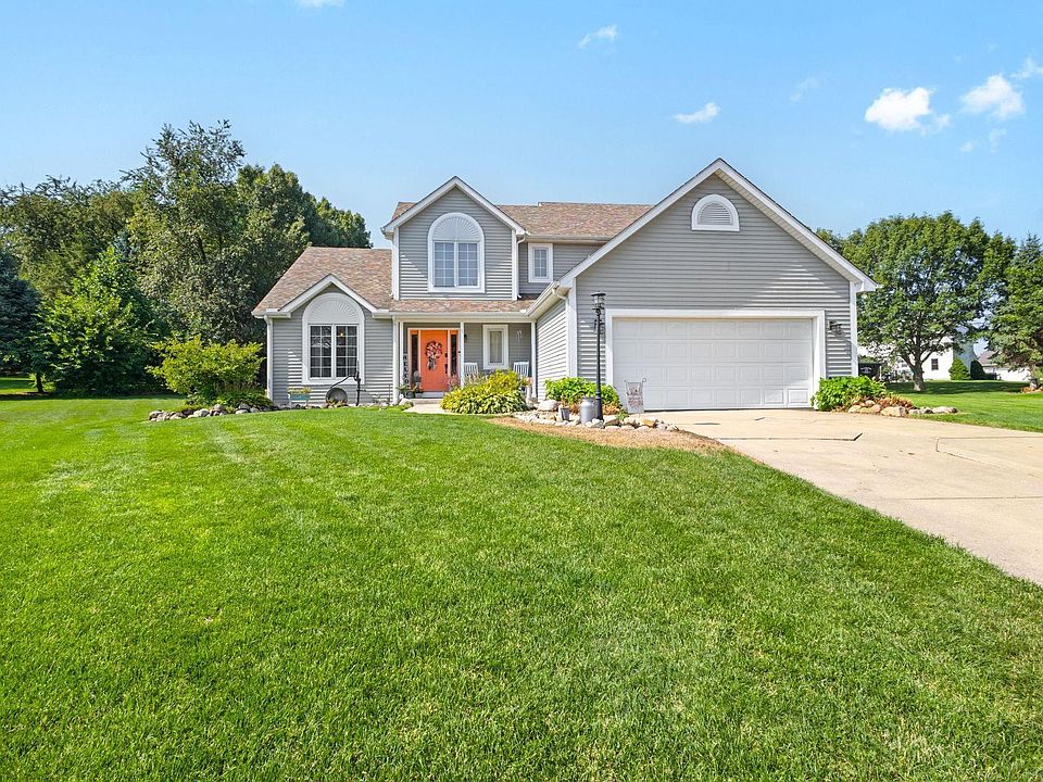 Welcome home to this stunning custom-built residence nestled on a quiet cul-de-sac. The thoughtfully designed floor plan offers effortless living, beginning with the main floor primary suite featuring a spa-inspired ensuite—luxurious soaker tub, walk-in tile shower, double vanity, and a spacious walk-in closet.Upstairs, you’ll find three generous bedrooms and a centrally located full bath. Soaring cathedral ceilings, an open staircase, and floor-to-ceiling windows wrapping around a custom built-in fireplace create a bright, welcoming space perfect for relaxing or entertaining.The stylish kitchen features newly refinished custom cabinetry, elegant lighting, new blinds, and opens to a formal dining room—ideal for gatherings. A centrally located half bath with a pocket door adds even more convenience.Enjoy outdoor living in the huge backyard, with peace of mind from a like-new roof, and nearly-new furnace and AC. The heated garage is perfect for year-round use. This home seamlessly blends luxury, functionality, and comfort in one irresistible package. Don’t miss out on this showstopper!