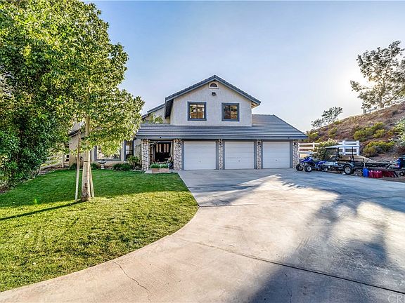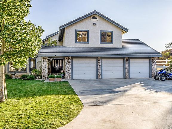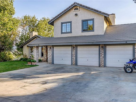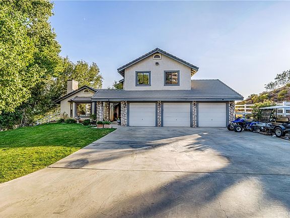 This stunning home overlooks the beautiful city and the rolling hills of Acton. The panoramic views on this home are breathtaking! The patio and deck off the master suite is an extension of the home's living space. The main home has 5 bedrooms and 3 full bathrooms with 1 bedroom downstairs. The kitchen has been remodeled with Viking appliances, gorgeous birch cabinets, hickory distressed wood floors, walk-in pantry with automatic light, under cabinet lighting, and granite counter tops. Every inch of this home has been thought out, such as recessed wifi lighting, dual A/C, whole house fan, cameras, tankless water heaters, surround sound, new carpet and more!! There is an additional permitted garage with a 1/2 bathroom, room on upper level that can be used as a bedroom, office, etc. It can be converted to a guest home (approximately 900 square feet per seller). There is lots of storage as well. Buyer to verify square footage. For RV, there are hook ups and 2 dumping stations and lots of room! There is no HOA, No Mello Roos!