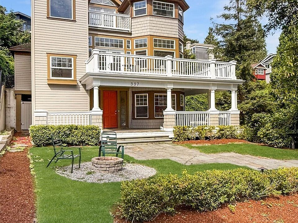Discover a charming Victorian-style home nestled in the desirable Arboretum/Madison Valley neighborhood. it offers a peaceful retreat just above street level. The open-concept main floor is ideal for entertaining, featuring a seamless flow between the living, dining, and kitchen areas, all opening onto an expansive deck with lovely views. The entire third floor is dedicated to a luxurious Primary Suite, complete with a walk-in closet, spa-like bathroom, and private balcony. Off-street parking for two vehicles. Enjoy ample outdoor living with a sprawling wrap-around porch, a side patio, and a cozy fire-pit area in the front yard.
