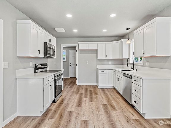 Come see this completely remodeled 2bed 1bath home with a large 2 car garage/shop! Home features all new custom soft close cabinetry, quartz counters, Black SS undermount sink, floor coverings, paints, doors, trims, fixtures, and more. Home also has all new concrete plank siding. Outside you will enjoy you large back deck, fenced front yard, 2 car shop, driveway parking, alley access, and low maintanance landscape. This is a very well done remodel with nice finishes. Come check it out