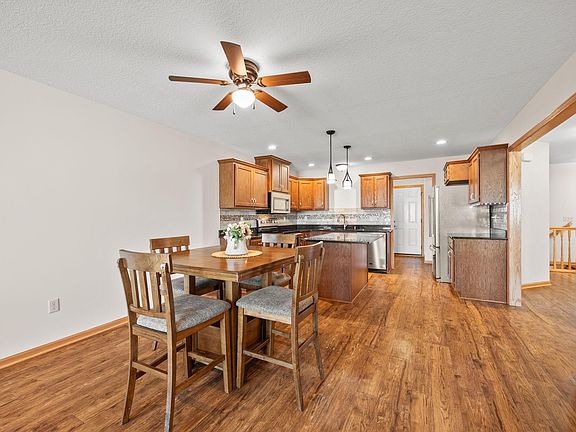 Welcome to this nearly new, low-maintenance townhome in the heart of Mayer! Built in 2018, this beautiful 3-bedroom, 3-bath home offers over 2,100 sq ft of thoughtfully designed living space. The open-concept main level flows effortlessly from the bright living room into the dining area and gourmet kitchen—perfect for entertaining or everyday comfort. The kitchen features granite countertops, stainless steel appliances, a pantry, abundant cabinetry, and a breakfast bar for casual meals. A convenient main-floor laundry is just steps away, and the versatile den works perfectly as a home office, nursery, or cozy reading nook. The main-floor primary suite offers a peaceful retreat with a full private bath and spacious closet. Downstairs, you’ll find two additional bedrooms, full bath, and large family room ready for movie nights or game days—with a walkout to the cement patio and flat backyard. This home has been professionally repainted throughout making it ready for you on closing day! Enjoy small-town living with modern style, The Dakota trails and parks a few minute walk away. The Zion Lutheran elementary school is within walking distance as well. This home works for every lifestyle.