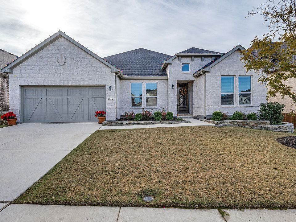 Welcome to this beautifully maintained home tucked inside the peaceful, lakeside community of Oak Point. Situated on a quiet cul-de-sac, this home offers comfort, style and the perfect blend of indoor and outdoor living. Step inside to an inviting open-concept floor plan filled with natural light. The spacious living area features a warm, welcoming atmosphere ideal for gatherings, while the modern kitchen boasts generous counter space, quality cabinetry with soft close hardware, and a large island perfect for meal prep and casual dining. The primary suite serves as a private retreat with a well-appointed ensuite bath and ample closet space. Upgraded carpet in the additional bedrooms provide flexibility for family, guests or a home office one which includes a custom murphy bed by Wilding Wallbed. Outside, enjoy a large backyard with plenty of room for play, pets, gardening or future outdoor living upgrades. The cul-de-sac location adds extra privacy and minimal traffic - perfect for peaceful evenings or kids at play. Located in a desirable community known for its friendly atmosphere, proximity to Lake Lewisville, parks, trails and convenient access to dining and major commuting routes, this home checks every box for comfortable North Texas living!