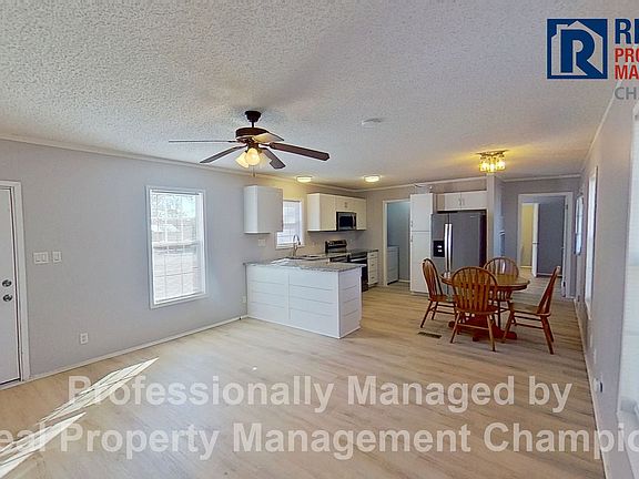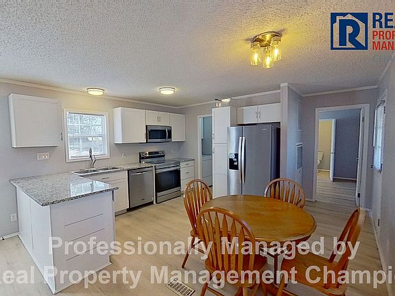 This newer 2 BD/2 BA home features an open concept main living area and beautiful LVP flooring that flows seamlessly though out. The spacious living room features a ceiling fan for your comfort and is open to the dining area and well-planned kitchen which includes ample cabinets, granite counters and double sink with window above. The stainless-steel refrigerator, range, built-in microwave and dishwasher are included. The adjacent laundry area includes additional cabinets and a washer and dryer for your convenience. The main bedroom takes advantage of the natural light with its double window and features a private bathroom with step-in shower. The second bedroom is on the opposite end of the house and is adjacent to the second full bath.