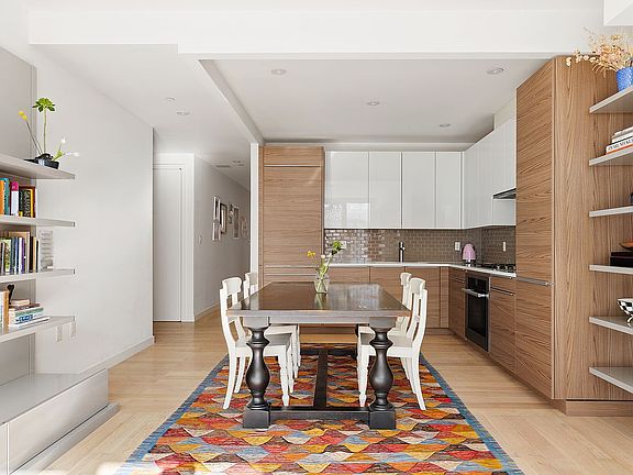Enter the home through the closet-adorned entryway that flows directly into an open concept living and dining area. The floor to ceiling Insulpane windows with southern exposures allow for continuous light throughout the day. The home, outfitted with two Juliette balconies and a generous terrace, allows for the luxury of both indoor and outdoor living.