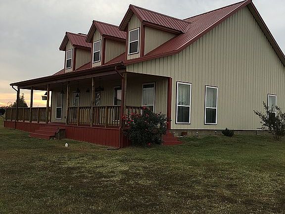 Beautiful 4 yr old, open floor plan, 2 story metal home on 5 ac., 3 bed, 3 bath, stained concrete floors, granite counters, utility room with sink, lots of storage, wrap-around porch, 40x60 shop, 40x11 lean to, oversized 2 car garage, paved rd,