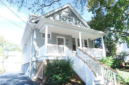 Lovely home with open front porch, entrance foyer, extra large living room with high ceiling and large windows. There is a new eat in kitchen with granite counter tops, light cabinets, butlers pantry for extra storage. There is also a formal dining room with wood style floors. This home has 1 full and 2 half baths, bath on main level was a full and can easily be converted back pipe still in wall. There are 3 nice bedrooms, all newer windows and siding. The full basement is partial finished with high ceilings, 1/2. Great curb appeal plus a one car over sized detached garage. This home shows great