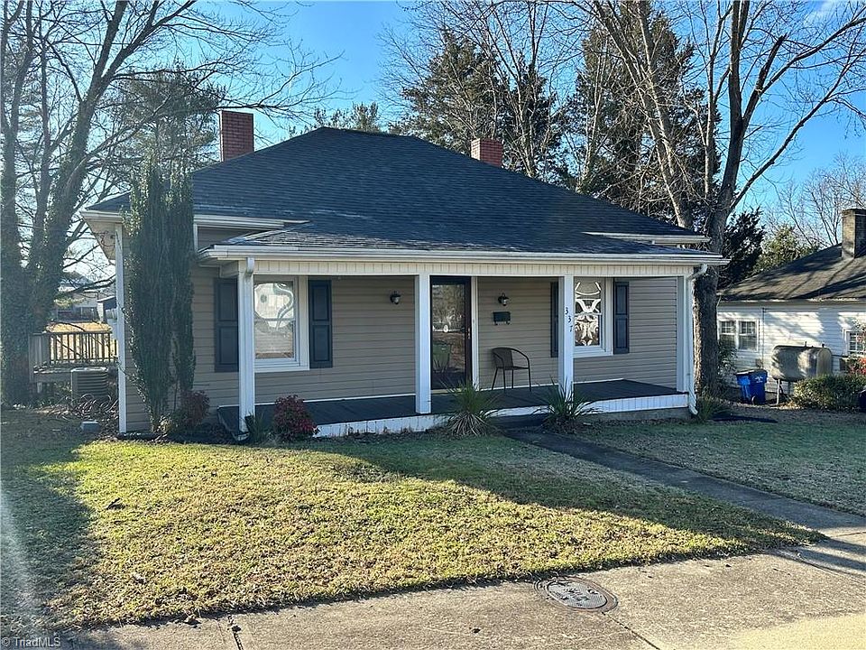 Great Location! Cute as can be cottage in the heart of Mayberry! This home would make a great Air bnb or full time residence! Inside has been updated and ready for a new owner! New roof installed in 2021! Interior features: hardwood floors, Granite countertops, tile backsplash, stainless steel appliances, large kitchen island, dining nook with built-in storage bench, 2 bedrooms- Primary has 3 closets, 1 full bath w/ tub/shower, laundry room and spacious living room. Exterior features: easy maintenance vinyl siding, storage building and back deck off the kitchen. This property is less than 1 mile to all the shopping and restaurants in downtown Mt. Airy. All appliances convey including washer and dryer.