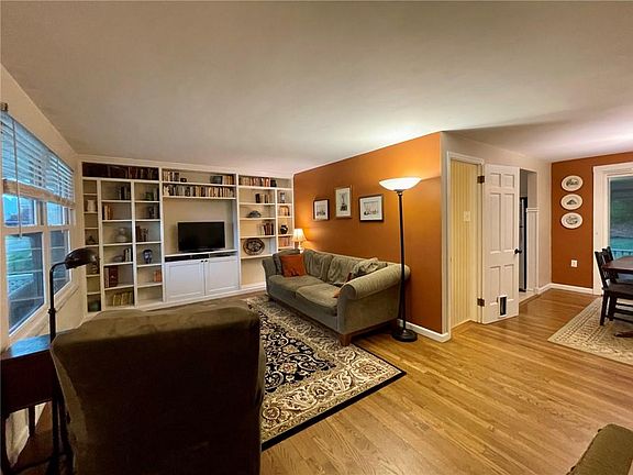 This 3 bedroom/2 bath Jenny Lynn Dr. home is completely move-in ready and makes the most of absolutely every space. Upon entering, the refinished oak hard wood floors add warmth to the 18x11 living room w/built ins & 11x9 dining rm. The timelessly updated 12x8 kitchen is a cooks dream with lots of tall cupboards & quartz counter space. A 25x9 enclosed porch sits off the dining rm for 3season enjoyment. 3 bedrooms, 14x12, 12x10 & 13x9 & a full bath are also located on the main floor. The 26x18 finished basement adds more space & includes another full bath.The beautifully landscaped front & a flat back yard are only the beginning of the outside area ~ there is cozy front porch, a paved patio for morning coffee, a raised deck on the tiered hill that overlooks the yard & another garden tier. Integral garage & concrete driveway easily hold 5 vehicles. New roof & home warranty offer peace of mind. Located on 2 cul de sacs, close to local elementary school, 79/376, Moon Park and PIT airport.