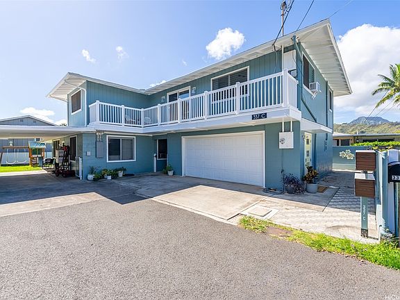 Beautifully remodeled in 2024, this coastal-chic Kailua home offers flexible living in one of Hawai‘i’s most desirable beach towns. Tucked on a quiet cul-de-sac, this breezy property features three separate living areas—perfect for multigenerational living, rental income potential, or a separate home office / home school / home gym. The second-floor main home includes a bright 3BD/2BA layout with sea-glass designer tones, while the ground level offers a stylish 2BD/1BA unit plus a spacious studio. Enjoy 6 bedrooms, 4.5 baths, two full laundries, an extraordinarily spacious garage, and a carport. Live in one space and rent the other two with ease. Just moments from windsurfing paradise Kailua Beach. One lot away from the world-famous Kawainui Marsh. This beautiful home embodies easy island living with room for everyone. Short walk to Kailua town with lots of beachy boutiques and popular dining options. Peace of mind with the fresh remodel and home warranty. Tenants on month to month leases.