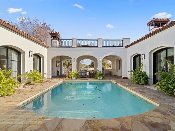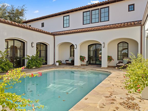 Stunning home in Prestigious Escondido located on the 4th fairway of the Tom Fazio Golf Course. This beautiful home is an entertainer's dream with outstanding indoor and outdoor spaces. The open floor plan kitchen/family room overlooks the fabulous courtyard pool and hot tub. There is also an outdoor kitchen and fireplace adjacent to the pool and a balcony deck above the pool area which gives breathtaking views of the hill country and golf course. There is room to expand for additional outdoor living space in the backyard. The kitchen has high-end appliances including a large gas cooktop. There is a separate formal dining room with plenty of room to entertain friends and family. The master bedroom is spacious with beautiful views of the courtyard pool. The master bath has a large soaking tub, a separate shower, double sinks, and a huge closet with built-ins and vanity. A beautiful bar with a wine room on the main level close to the half bathroom and door to the pool. Upstairs there are two more bedrooms, each with their baths & a family/game room between them. There is a 3 car garage, beautiful landscaping & circular drive. Gorgeous front door, stunning ceiling treatments throughout, and beautiful tile work in all the baths. This is a fabulous home for family and friends!