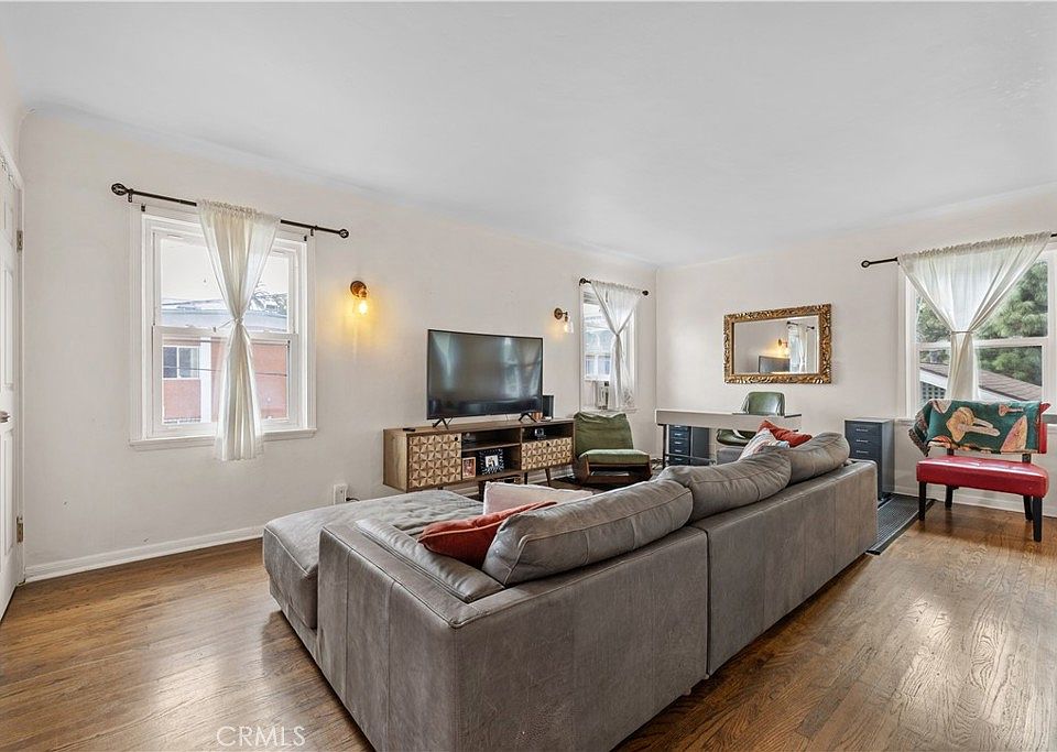 Welcome to this charming one-bedroom, one-bath condo in the heart of the East Village Arts District in Downtown Long Beach. This bright end unit has windows on three sides, filling the home with natural light and a refreshing coastal breeze. Inside, beautiful wood floors and a thoughtful layout create a warm, inviting feel. The galley kitchen is ideal for cooking and entertaining, offering an efficient and functional design. With only ten units in the building, residents enjoy a rare sense of privacy and community. This home blends modern comfort with timeless character in one of Long Beach’s most vibrant neighborhoods. This unit also comes with one grandfathered parking space in the adjacent church parking lot for small monthly fee