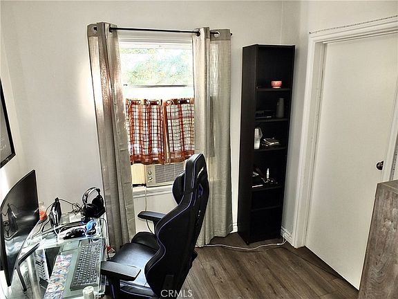 Discover this chic end-unit condo, located on the upper level at the front of the building. This inviting 1 bedroom, 1 bath residence boasts a spacious living room plus a bonus room, ideal for a home office. The home features fresh paint and stylish wood-like flooring throughout, along with ample closet space. The secure complex offers a community laundry room, storage facilities and a large shared backyard. HOA covers most utilities, including water, gas, and trash, leaving you responsible for only internet and electric.