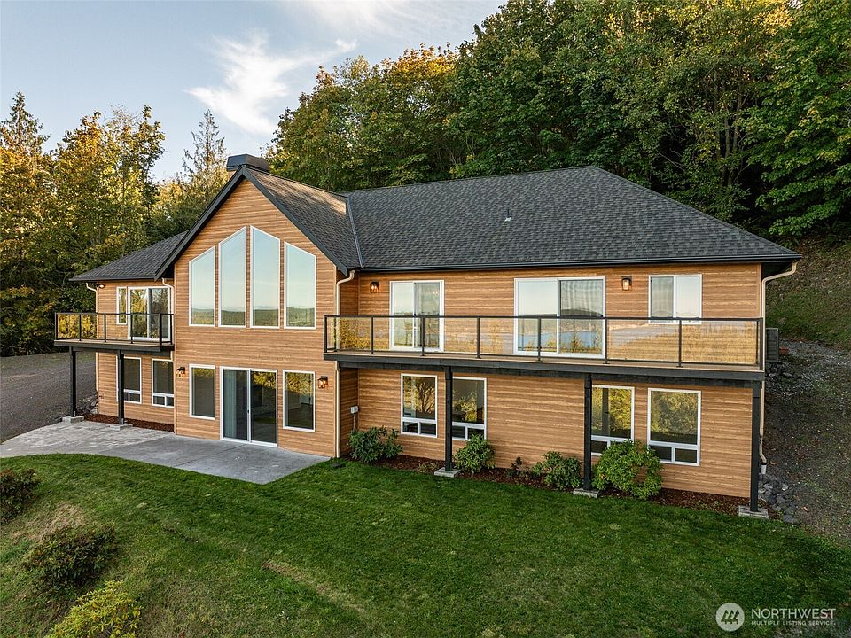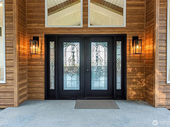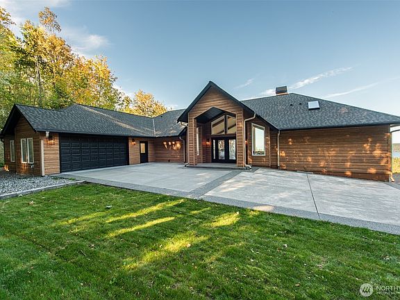 Absolutely stunning water view home on 5 private acres. Completely remodeled with spectacular results. Natural light from towering windows help highlight superb craftsmanship on display. Wainscoting, big baseboard trim & painted wood ceilings w/big wood beams provide for a clean natural feel. Large great room, chef's kitchen incl 6 burner Kucht range, 3 bedroom suites incl a large primary w/big views, beautiful electric fireplace with wood surround & a spa-like bathroom. Downstairs is the 3rd bedroom suite, 2 large living rooms & flex room. No steps into the huge garage w epoxy floors. Generator-ready plus central vac & on demand hot water. The home is reached by a private driveway & the combination of views & privacy is what we all covet.