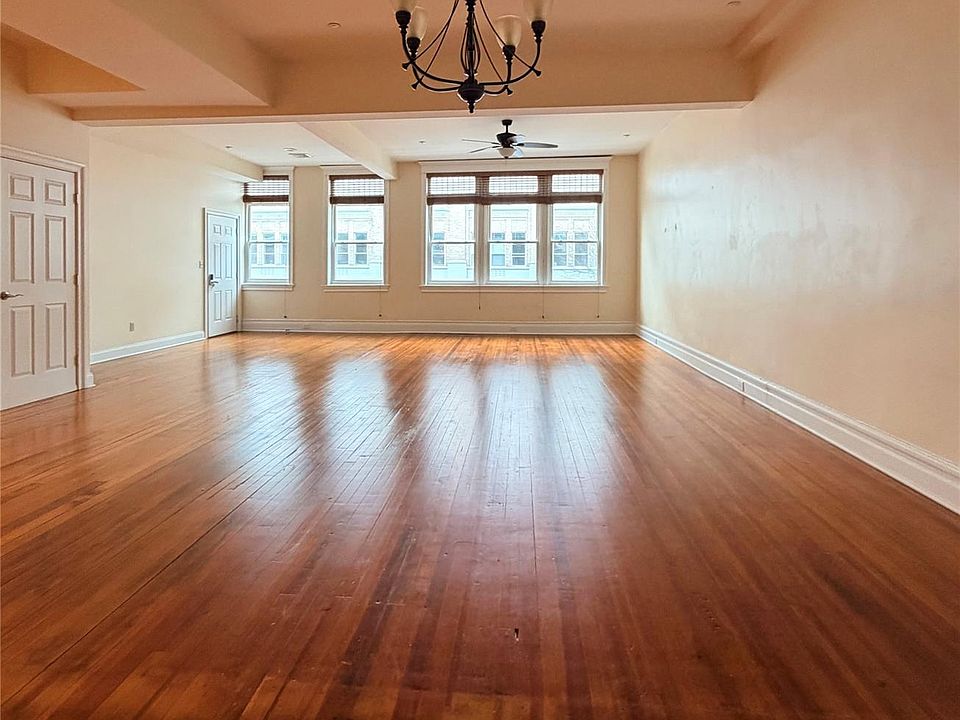 Soaring high ceilingsRich wood floorsAiry and invitingIn-unit laundryMassive open-concept layout