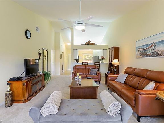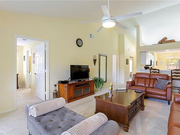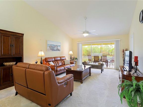 Indulge your winter in Naples luxury with this beautifully furnished, sunlit 2nd-floor corner residence, perfect for snowbirds seeking a rental in our sunny paradise. Boasting a spacious layout, high ceilings and adorned with elegant furnishings, this 2+den unit promises comfort and style. Step out onto the tiled screened lanai and immerse yourself in the tranquility of the surroundings. The primary bedroom beckons king-size bed, private bathroom, and large walk-in closet, while the second bedroom offers a cozy queen bed. The den provides additional sleeping space with two twin beds, ensuring ample accommodation for guests. Relish enjoyable views of the shimmering lake and water feature from the lanai while sipping your morning coffee or afternoon drink. Stay connected with complimentary WiFi internet and unwind with basic cable entertainment. Embrace great amenities of access to two pools, a well-equipped workout room in the community clubhouse, tennis and pickleball courts. Conveniently located just minutes away from shops, dining, and the renowned beaches of downtown Naples, this oasis offers great convenience in term of location. For added convenience, a detached one-car garage is at your disposal. Experience the ultimate Naples getaway with this exquisite rental opportunity.