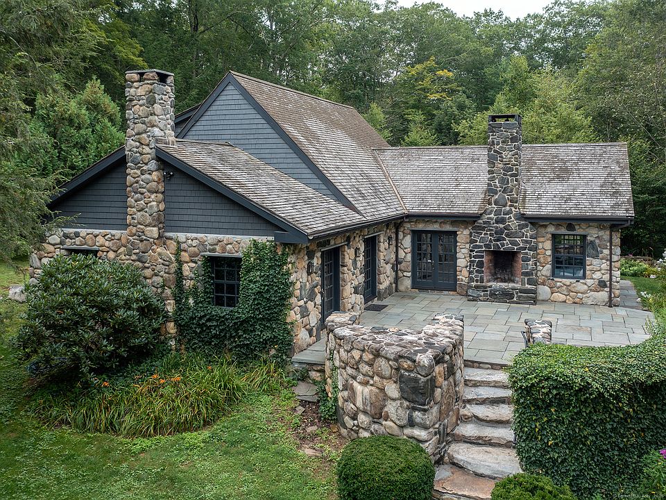 A Storybook Stone Cottage with 2000+/- feet of frontage along the Shepaug River. Step into a fairy tale with this enchanting stone cottage, where timeless charm meets natural beauty. The welcoming front terrace with wood-burning fireplace sets the stage for outdoor gatherings, all while the soothing sound of the Shepaug River echoes in the background. Inside, the warmth continues with 2 additional stone fireplaces anchoring the Living and Dining rooms. The main-floor primary suite opens directly to a private back terrace-perfect for morning coffee. Upstairs, 2 additional bedrooms share a full bath and an office nook. Follow the extensive trail system to the handcrafted stone steps into your own private swimming/fishing hole in the river. This is a truly rare and magical retreat, located on an officially designated scenic road. The property in fronted by a 500 foot stone wall and offers direct access to miles of walking/mountain biking and borders Steeprock Land Trust. Just minutes from Lake Waramaug's beach access and the charming villages of New Preston, Washington Depot, Bantam, and Litchfield. Indoor tennis at Rumsey Hall School is just a short walk away, and the property's extensive trail network invites year-round exploration. Did I mention the outdoor pizza oven?