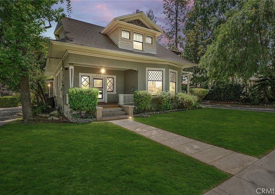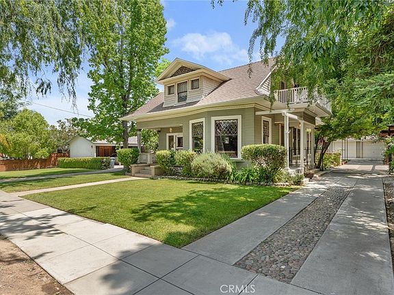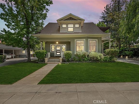 A timeless South Redlands classic with rare heritage, modern touches, and unmatched charm. Welcome to the Thomas M. Dugan House, a distinguished 1898 Historic Victorian Cottage and recipient of the Historical Society Heritage Award tucked into the heart of the Smiley Park Historic District. This is where old-world craftsmanship meets modern convenience in all the best ways. With over 2,500 square feet of open living area, 4 bedrooms, 2 full baths, and several bonus rooms, this home offers both space and soul. Step into a home where every detail tells a story—original hardwood floors, box beam ceilings, diamond-paned dual-hung windows, intricate moldings, and beautifully paneled custom pocket doors all speak to the timeless craftsmanship of 1898. Yet, this home has been painstakingly contemporized, with modern touches such as central AC/heating, recessed lighting, and indoor laundry room with sink and storage enhancing everyday living without compromising the home’s historical integrity. The expansive formal living room is the heart of the home, anchored by a unique river rock fireplace and filled with voluminious natural light from oversized windows. The adjacent dining room stands ready for both everyday dinners and special celebrations. The chef’s kitchen has been masterfully updated to blend heritage with high function, offering granite countertops, custom cabinetry, stainless steel appliances, a built-in Sub-Zero refrigerator, and a professional-grade 6-burner DSC range with griddle. Through the parlor, the airy family/game room features a distinctive v-shaped bay window. Upstairs, the primary suite is a peaceful retreat with a cedar-lined closet and a private, tiled balcony shaded by mature trees. The primary bath feels like a vintage spa retreat, featuring a clawfoot tub with a rain shower and a brass-enclosed surround. The gated driveway—EV-ready—leads to a detached two-car garage with an upper-level finished loft offering nearly 250 square feet of flexible space, well-suited for a creative studio, home office, or future junior ADU. Located on a classic, tree-lined street just blocks from downtown Redlands, Gerrard’s Market, and more—you’re surrounded by boutique shops, foodie spots, and historic charm at every turn, as well as award-winning schools, outdoor life, and quick access to amenities/travel options. Come experience a true piece of Redlands history.