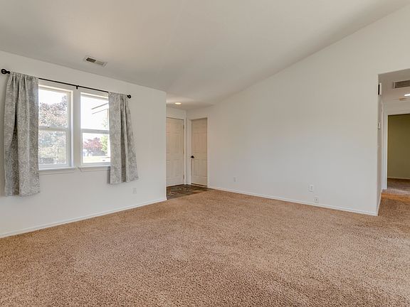 Comfortable Single Floor Living! This delightful home offers 2 bedrooms and 2 bathrooms within a spacious 1032 square foot layout. Step inside to an open concept design enhanced by vaulted ceilings, providing an airy and expansive feel throughout the living room. The kitchen features an eat-in bar and a generous pantry, perfect for serving culinary creations and ample storage. The large primary bedroom becomes a private retreat with its own private bathroom and a walk-in closet, providing convenience and privacy. The second bedroom also comes equipped with a walk-in closet, offering additional storage options. Outside, unwind in the peaceful backyard patio, ideal for relaxation or entertaining guests. Enjoy the two-car garage and the sleek storage shed for even more storage space. Located in an established neighborhood and just minutes from shopping, groceries, and restaurants. Up to $5,000 in closing cost credit. Call for details
