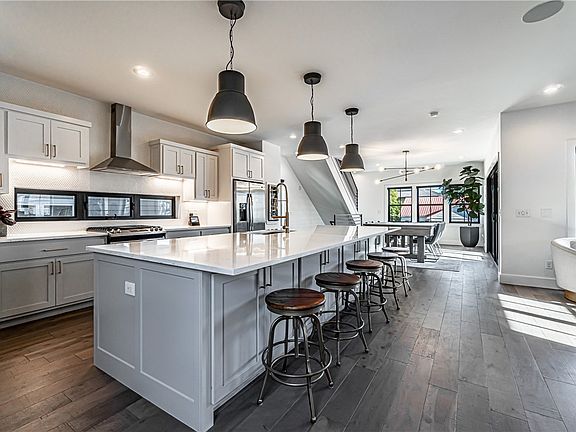 Showstopping home in Downtown Bentonville! This immaculate 3 bed, 3.5 bath home boasts designer finishes throughout that are sure to impress. The sun-filled main floor boasts an open concept layout with dining space, a living area, and a top of the line kitchen with an oversized island, built-in wine fridge, gas range stove, and beautiful countertops. Unwind in the primary suite showcasing a sliding barn door, patio access, and an ensuite bathroom featuring a large soaking tub and tiled shower. Additional amenities include a second seating area with fireplace and a spacious garage with epoxy flooring. This home is ideal for entertaining with its 2 decks and unique rooftop patio with 360 degree views of the downtown setting. Nestled in the heart of the Bentonville Arts District with immediate access to miles of biking trails and all that Downtown Bentonville has to offer, this home has everything you need and more. Welcome to your dream home!