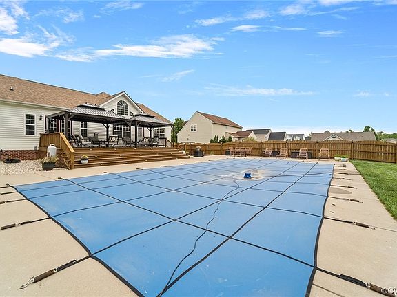 Decked Out BACKYARD OASIS is waiting for YOU to ENJOY! Main level living at its best in this well-appointed 2,200sqft 4BDR/2BA home with an attached 2-car garage, detached 24x30 pre-wired 2-car garage, utility shed, and 20x40 inground saltwater pool all located on a deep lot in the highly desirable area of Enon (Chester) close to Fort Lee and major highways. High ceilings and oversized windows help to capture the inviting views of the backyard which has an oversized deck and sprawling concrete patio area allowing for ample room to relax and grill. Inside entertaining is made easy with the family room flowing naturally into the dinning and large kitchen featuring granite countertops and expansive island. The primary bedroom has access to the backyard, cathedral ceilings, large walk-in closet, and a 5-piece ensuite including a corner jetted tub. There are two other bedrooms located on the main level and a 4th bedroom with oversized closet above the garage providing plenty of space for home offices or family & friends to feel comfortable during those extended stays. Take time to see all the extras & benefits this HOME offers.