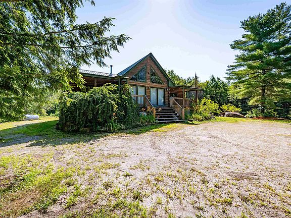 Escape to this spacious log chalet set on 44 private acres in beautiful Stow, Maine! This inviting 3-bedroom, 2-bath home blends rustic charm with modern comfort. The custom kitchen features stainless steel appliances and opens to a bright living area with cathedral ceilings, abundant natural light, and rich wood finishes throughout. Stay warm with radiant heat and a cozy wood stove or relax outside on the covered porch overlooking your peaceful surroundings. The large detached four-car garage offers plenty of space for vehicles, tools, or hobbies. With 1,700 sq. ft. of finished living space plus a 1,488 sq. ft. unfinished basement, there’s room to expand or create a custom retreat. Some furnishings are included for an easy move-in. Just 20 minutes from Pleasant Mountain Ski Resort, this property offers the ideal balance of comfort, recreation, and privacy—your perfect getaway in the heart of Maine.