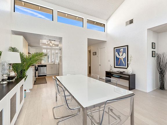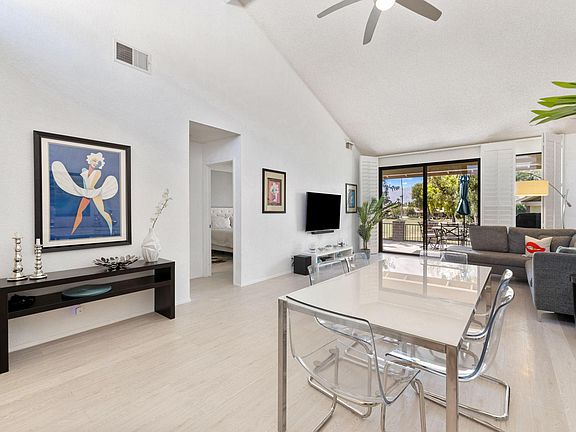 Leased November 1, 2024 - April 30, 2025 Turnkey Furnished! Curb appeal describes this plan 200 beginning from the street as you enter through the private, beautifully landscaped, enclosed courtyard to your own private retreat. The panoramic views of the golf course, single-level 2 bedrooms/2 bathrooms condo makes a perfect winter getaway. The living room features an oversized sliding glass door that brings ample natural light and provides easy access for indoor/outdoor living. The living room and dining area boasts vaulted ceiling with clerestory windows, making this unit light and bright. The primary en-suite bath has dual sinks, 2 closets and direct access to the bright and sunny patio, second bedroom with slider door leading to south facing courtyard patio, inside laundry, planation shutters, and double car garage. The kitchen and both bathrooms are updated, laminate flooring and open concept living! Enjoy the fabulous lifestyle the desert has to offer and experience gorgeous views from the enclosed extended back patio, perfect for entertaining! Start enjoying the Resort lifestyle at Monterey Country Club, with 27 holes of championship golf, 19 Tennis and Pickle Ball courts, Fitness Center, and 37 community pools and spas. Conveniently located close to The El Paseo Shopping District, The Shops at Palm Desert & Acrisure Arena.NOTE: There may be variation in prices which is reflection of our flexible pricing structure.