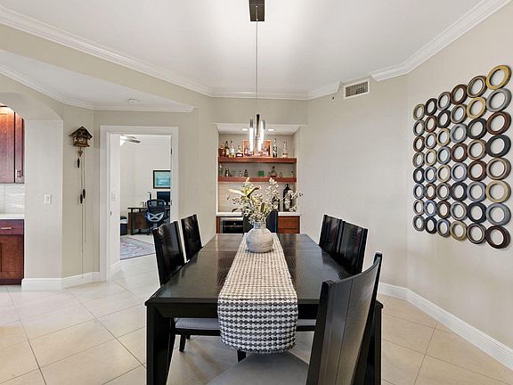 Experience the quiet luxury of coastal living in this beautifully appointed 3-bedroom, 3-bathroom residence in the gated community of Vintage Bay. With western exposure, your evenings are painted in golden hues as the sun dips below the bay, best enjoyed from your expansive screened lanai, where coastal breezes and serene water views set the tone for island living.Inside, the bright and open floor plan features tile flooring throughout, creating a clean, cohesive backdrop for relaxed elegance. The updated kitchen offers modern appliances and a sunlit breakfast nook, ideal for starting your day with coffee and calm.Designed for effortless entertaining, a chic dry bar with built-in wine cooler adds style and function just off the main living area. The primary suite is a true retreat, complete with lanai access, walk-in closets with custom built-ins, and a spa-inspired en-suite bath. Two additional guest bedrooms and full baths provide comfort and privacy for family and visitors alike.
