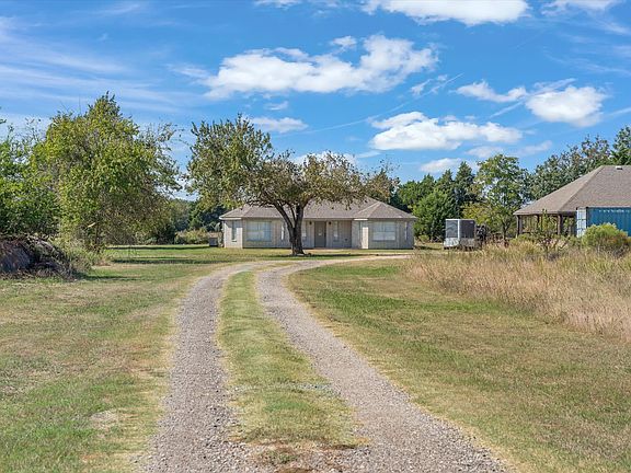 Escape to the country with this beautiful 4 bed, 2 bath brick home nestled on 5 acres of open land. Built in 2006 and updated with modern finishes, this 2,648 sq ft home offers the perfect blend of comfort and rural charm. Step inside to find an inviting open-concept layout with a spacious living area, stone fireplace, and bright natural light throughout. The kitchen features granite countertops, stainless steel appliances, and plenty of cabinet space. The primary suite includes a luxurious bath with dual glass vessel sinks, tiled shower, and soaking tub.
