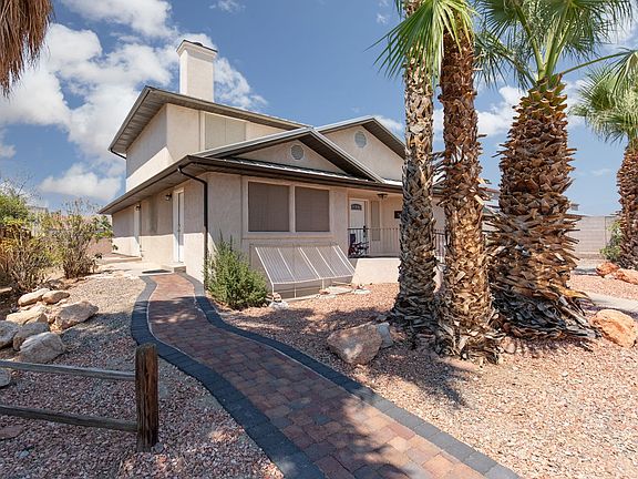 Discover your new home in Mesquite, NV 89027 a welcoming abode with a touch of desert charm. This cozy, well-maintained property boasts an inviting facade complemented by mature desert landscaping and a spacious driveway leading to a quaint front entrance. Step inside and be greeted by a bright and airy atmosphere, highlighted by a comfortable living space featuring plush carpeting and a cooling ceiling fan, perfect for those warm Nevada days. The heart of the home, the kitchen, presents practicality with ample cabinetry, modern appliances, and a stylish backsplash. The adjacent dining area merges seamlessly with the kitchen, ensuring effortless entertaining options. Progress to the upper level where privacy awaits in the tranquil bedrooms, each equipped with ceiling fans and generous closet space, promoting a serene retreat for relaxation. The bathroom offers convenience with an in-unit laundry setup and a classic bathtub shower combo, providing a practical yet relaxing space. Enjoy outdoor living in your low-maintenance yard, where natural beauty awaits with captivating palm trees framing your personal oasis. This is a quintessential haven for anyone seeking a blend of comfort, simplicity, and the unique allure of Mesquite living. Welcome home!