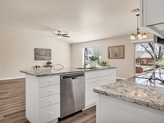 Enjoying living in this updated, light and bright home with newer LVP flooring, granite countertops, stainless appliances and a spacious great room that looks out into the common area. Surrounded by gorgeous red rock views, the open space allows tons of natural light into the home. The split bedroom floor plan, with the owner's suite on the opposite side of the home, allows family or guests to also enjoy their own privacy. The garage and laundry are conveniently located off the master suite as well. Amber Estates community is a convenient walk to Ivins City Park, multiple hiking, biking trails and parks. The Red Mountain Spa, Snow Canyon State Park, multiple restaurants and golf courses are within a few miles of this fabulous home.