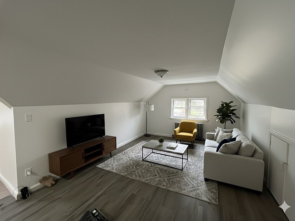 Renovated 1 bedroom apartment. Top floor of a quiet private house. Walking distance to public transportation. Heat & hot water included. Brand New kitchen appliances! *Photos have been virtually staged*