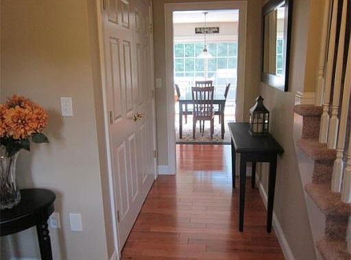 This beautiful home is set far back from the street on this private, spacious, flat lot. Plenty of room for cookouts, ballgames, bouncy-house parties, pets and more! Walk inside from the back yard onto the deck and into the airy open floor plan where you will find soaring ceilings, wainscoting, and beautiful architectural touches. The eat in kitchen with center island, gleaming hardwood, cherry cabinets and open floor plan will entice you to stay right there. But don't miss the trayed ceiling in the dining room and the beautiful mantel on the GAS fireplace in the family room, the Palladian windows, or vaulted ceiling. Spacious bedrooms with cushy carpeting and baths with cherry cabinetry and granite countertops await you upstairs. There's a plentiful storage area off the master and be sure to check out the special ambient lighting in that room! Saving the best for last...the finished family room on the lower level. Economical GAS HEAT and central air!