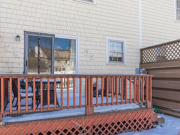 Welcome to Weatherstone! A small development in a desirable community. Located with easy access to major routes, recreation, beaches, and shopping. This Townhouse style 2 bed 2 bath unit awaits its new owner and updates. Bright and sunny with hardwood floors and partially finished basement. Enter from the front porch to a spacious living room that leads to a half bath and eat-in kitchen with pantry. A sliding door from the kitchen leads to a private deck with green space. The second floor offers two bedrooms with plenty of closet space and a full bath with built-in linen storage. Two designated parking spots, snow and trash removal and landscaping included.