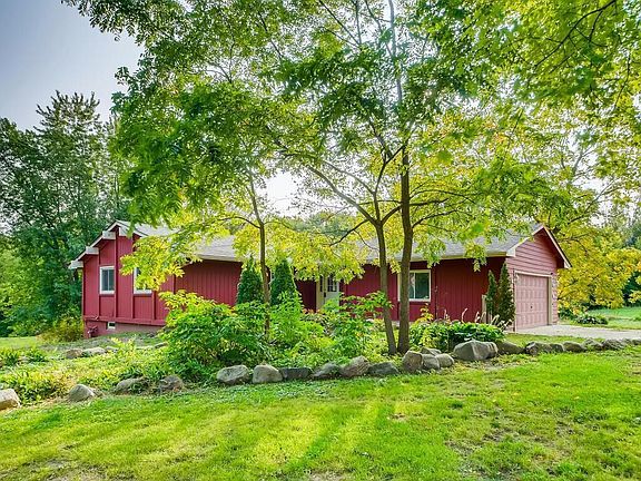 Gorgeous rambler with two master suites on 2.09 acres! Privacy and nature galore is awaiting your personal touch. Relax and take in the panoramic views, mature landscaping on your private covered deck. On the main level you will find an inviting bright foyer, wood burning stove, tile & hardwoods, new carpet, freshly painted throughout, eat in kitchen with vaulted ceilings, breakfast bar and breakfast nook. The main floor also features a flex room that can be used as an office or formal dining room. Both master suites are located on the main level, plenty of storage with built-ins and several closets. An expansive lower level has 3 additional bedrooms, bonus room and family room, with a walk out to the backyard. Don't miss the incredible 30x40 pole shed with concrete floor, and lofted storage! Lot also features apple trees and grape vines. There is a new roof being installed. This is a must see!