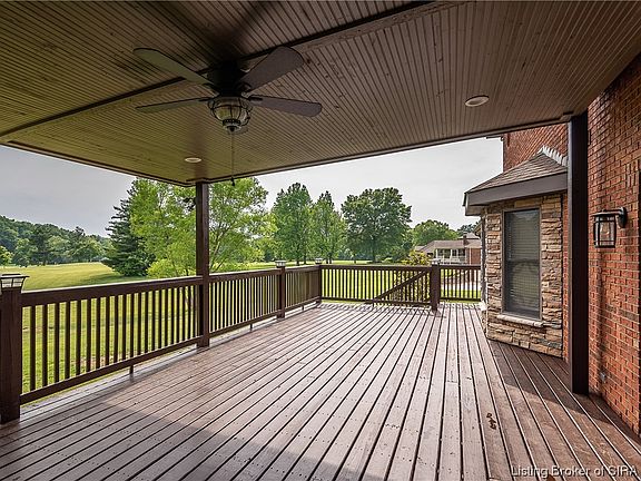 This beautifully appointed majestic home overlooks the 7th green of Valley View Golf Course in scenic Floyds Knobs Indiana. Picture yourself having your morning TEE or evening dinners on the spacious covered deck of this immaculate charmer while enjoying a spectacular panoramic view. This classic custom-built beauty features a brick exterior with stone detail, meticulously maintained landscaping and yard, an impressive covered/uncovered deck to host the perfect 19th Hole gatherings and a firepit area for those cool summer evenings. You will be amazed at the spacious interior of this home that features 4 bedrooms, 3 bathrooms, a generously sized bonus/family room, office, and a formal dining room. Cozy up to the woodburning stone fireplace in the hearth room that opens up to a roomy and impressive kitchen that includes a pantry. You will not be short on space in the enormous walk-in closet connected to the main bedroom/en suite area. In the full basement, you will find plenty of space in the garage area for all of your toys and hobbies, as well as a generous area to park your vehicles. The unfinished area of he basement is ready for your personal touches, includes the perfect place for storage and a sweet custom play house area for the littles in your life. Recent updates include new TRANE HVAC system in 2020, water heater in 2021, and the gorgeous covered deck. Schedule a viewing today and make this dream home a reality!