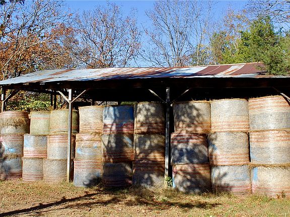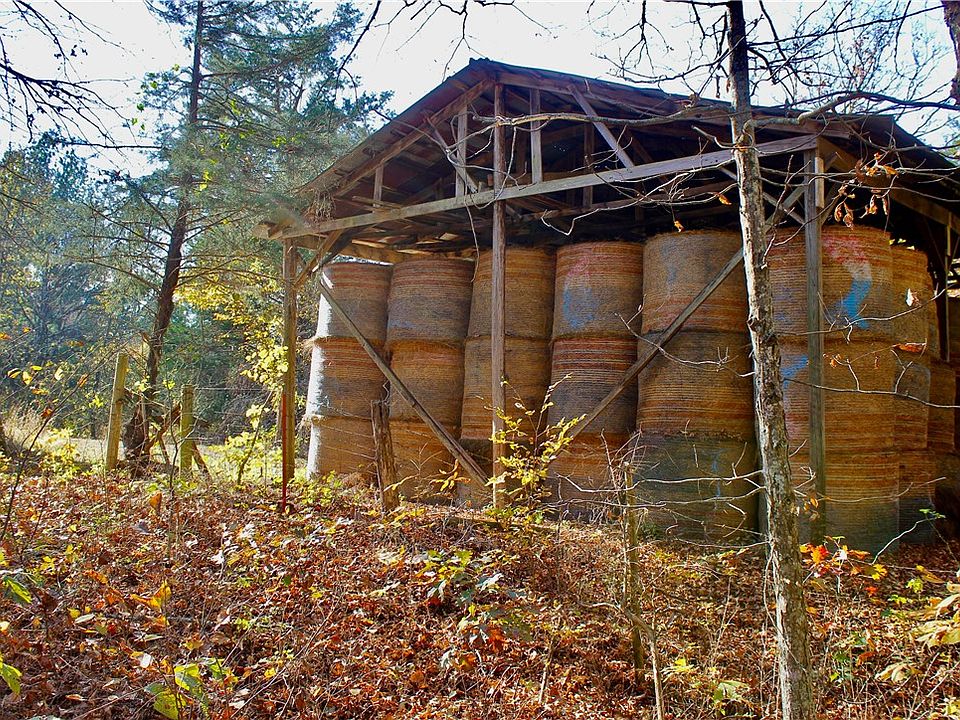 Water wellRock bluffsPropane lineTwo large barnsHardwood timberWell house