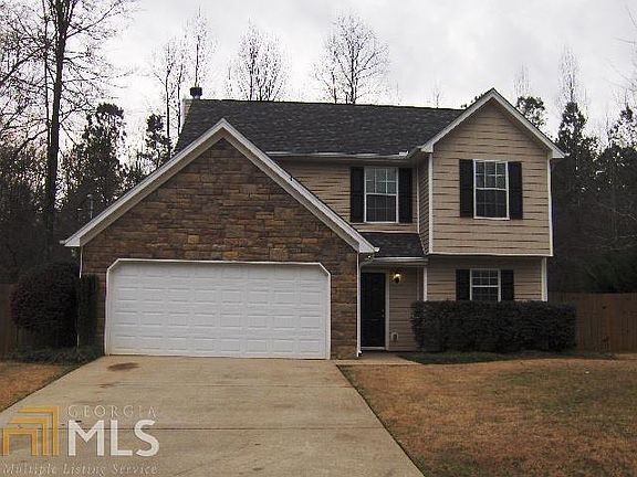 This 2 story stone front and vinyl sided home has just been painted, new carpet upstairs, new vinyl in all baths and has architectural roof - all on a 1.58 lot with fenced back yard! Large great room with fireplace, double oven in kitchen, refrigerator, large dining area - all with simulated wood floors. Half bath off foyer. All 3 bedrooms upstairs have large closets. Covered front porch and covered back patio - ready to move in!
