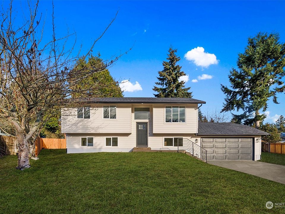 Welcome Home! Enter an open concept fully updated home with ample natural light and vaulted ceilings. Stunning chefs kitchen including SS appliances, quartz countertops, a center island with a beautiful waterfall edge, perfect space for entertaining. The main level offers phenomenal laminate flooring, 3 bedrooms & 1 full bath. With a fully finished lower level offering cozy new carpet a spacious great room/flex space, 2 large bedrooms, updated bath & laundry room. Exterior updates include a new roof, windows & paint. Great size yard with a 2 car garage! This beautiful home is presented in turn-key condition, minutes to I-5, SR18, schools, and parks. Perfect for First time home buyers/House Hack/Short term rental or income producing property