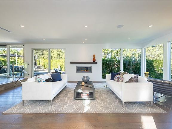 Great modern single story home featuring 5 bedrooms plus family room and large bonus room that is perfect for a home theater or playroom. Close to 4200 sq. ft. with an open, light filled floor plan, walls of glass and hardwood floors. The living room and formal dining room include a fireplace and views. Large center island kitchen with Viking oven/range and Sub-Zero refrigerator opens to a family room. Glass doors from the family room open out to the private yard with a pool, spa, gardens and grass play area. Spacious primary suite includes a luxurious bathroom with double sinks, a soaking tub and over-sized glass shower. There are also 2 walk in closets. 3 car attached garage and extra large driveway for parking. Cul-de-sac street close to Mulholland Drive, Brentwood and the Westside.