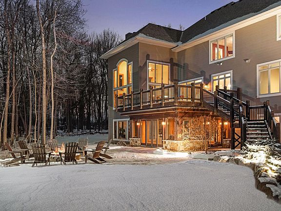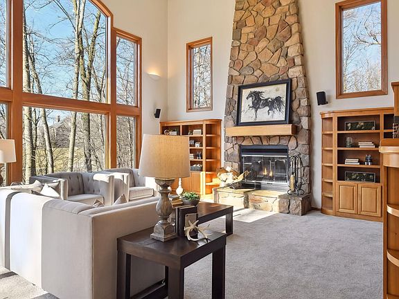 Exceptional two-story sited on premier 3-acre lot in Woodhill Farms. Vaulted great room with cut stone fireplace and wall of windows overlooking the private wooded backyard. High-end finishes throughout including custom millwork, coffered ceilings and hardwood floors. Center-island kitchen with large pantry and informal dining steps out to the large deck overlooking patio, lawn and woods. Four bedrooms on the upper level including a large primary suite with sitting room, large walk-in closet and private bath. Walkout lower level features a pine-paneled porch opening to the patio, firepit and private backyard. The rest of the basement is ready to finish into additional entertainment space, bathroom and fifth bedroom. Generous three-car garage space with an additional lower garage providing plenty of storage and room for all the toys. Quiet cul-de-sac location, minutes to Baker Park and steps to Orono bus stop.