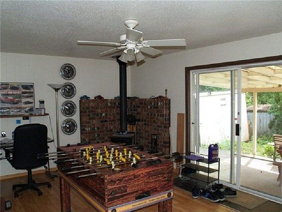 - Fireplace features: wood stove