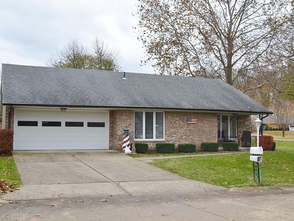Wonderful location in western Clark County ~ Greenlawn Village Condominium 55 & older community stand alone brick unit with 2 bedrooms, 1 1/2 baths, end unit on a dead end street with nice trees to enjoy the view from the rear covered patio! The Condo fees are $500 per quarter which includes lawn care, snow removal, water/sewer, trash and roof repairs. Better Hurry!